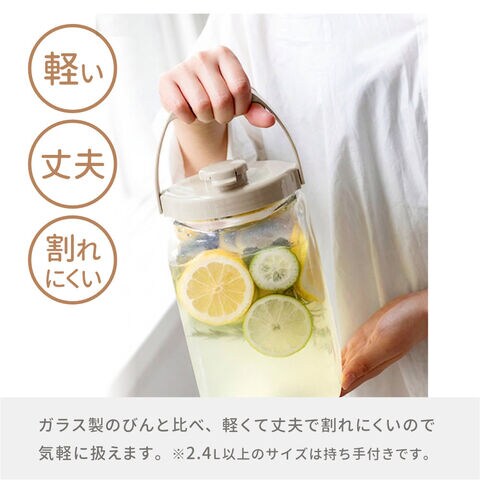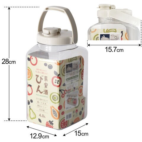 梅酒瓶 プラスチック 角型 4.0L グレージュ | 梅酒瓶 保存容器 びん S型 梅酒 ビン シロップ漬け 日本製 フルーツシロップ 果物 梅 密封 自家製 手作り プラスチック 軽量 タケヤ サングリア 4リットル ハンドル付き