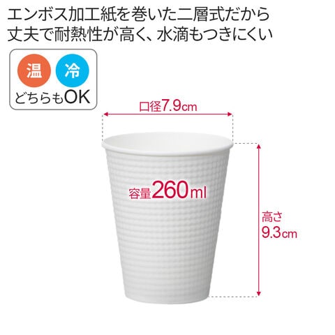 凹凸加工で優れた断熱性を実現手に熱を伝えにくく水滴もつかない、表面エンボス加工紙を使用しています。