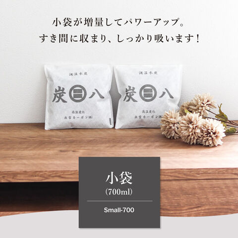 炭の容量は、スマート小袋(400ml)の1.75倍!炭の量が多いほどたくさんの湿気を吸ってくれます。