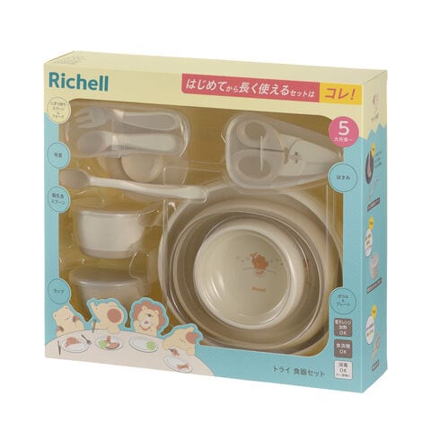 リッチェル トライ 食器セット | ベビー食器 離乳食 すくいやすい プラスチック 5ヶ月頃~ お椀 ボウル お皿 スプーン フォーク 電子レンジOK 食洗機OK 子供用食器 Richell おしゃれ 男の子 女の子 ベビー用品