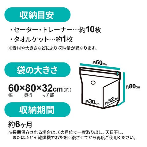 本品は羽毛(ダウン80%以上)製品にも使用できますが、羽毛の素材によりふとん圧縮時に羽毛の芯が折れるため、羽毛ふとんは約1/2までのふんわり圧縮をおすすめします。