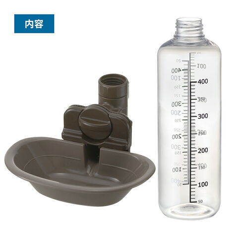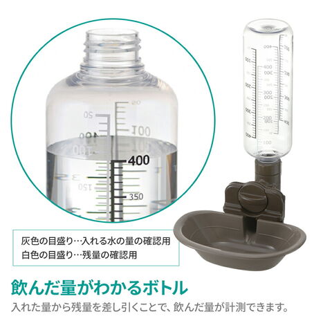 容量(約):ボトル/470ml、最大目盛容量/400ml、受け皿/310ml、貯水容量/170ml(水位25mm)