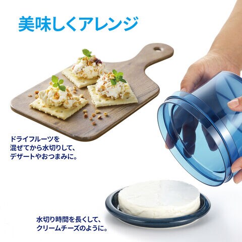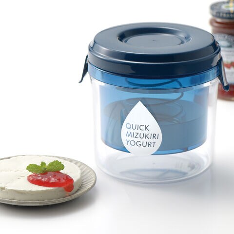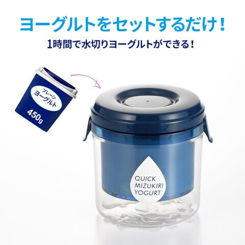 ヨーグルトをセットするだけで短時間で完成する、水切りヨーグルト容器。
