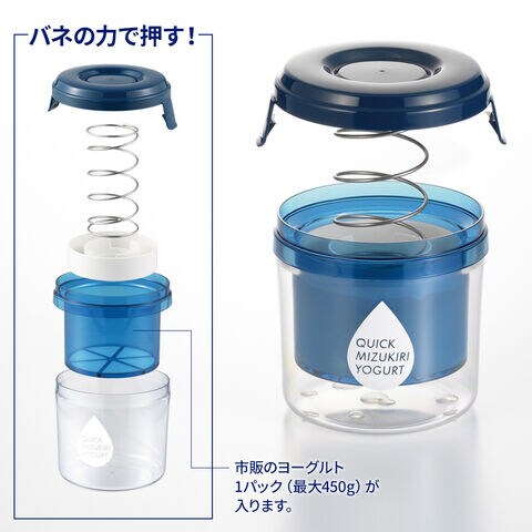 クイック水切りヨーグルト ST-3001 | 水切りヨーグルト 水切り 容器 グリーク ヨーグルト 濃厚 クリーミー ギリシャ 発祥 高たんぱくヨーグルト 紙フィルタ不要 バネ 押す 水切り製法 堅め ヨーグルトチーズ 美容
