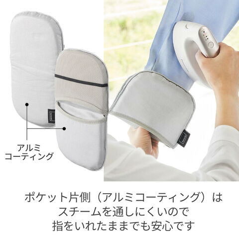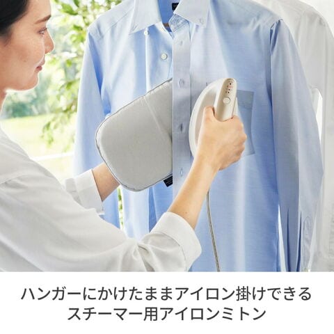 ハンガーに掛けたままアイロン掛けができる、衣類スチーマー用アイロンミトン。