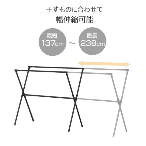 伸縮式洗濯物の量や布団の大きさに合わせて、本体幅を調節可能。