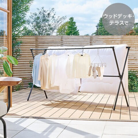 ベランダやお庭で使える!屋外向けのX型物干しスタンド。