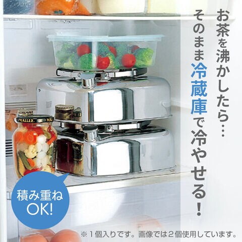 冷蔵庫の棚にも入れられる、平たい角型のヤカン。