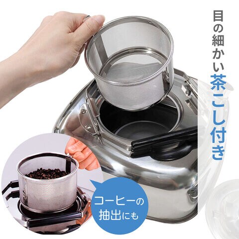 茶こし付き茶葉やコーヒー豆などを直接入れられる茶こし(ストレーナー)付き。