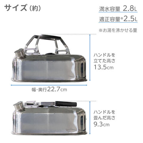容量(約):満水/2.8L 適正(お湯の沸かせる量)/2.5L