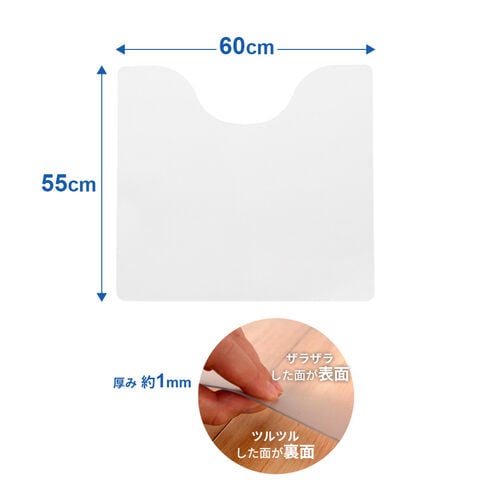 トイレマット 透明マット 55×60cm | マット クリアマット 拭ける 透明 薄手 フリーカット シンプル 無地 防汚 水ハネ防止 傷対策 PVC 保護マット トイレ用品