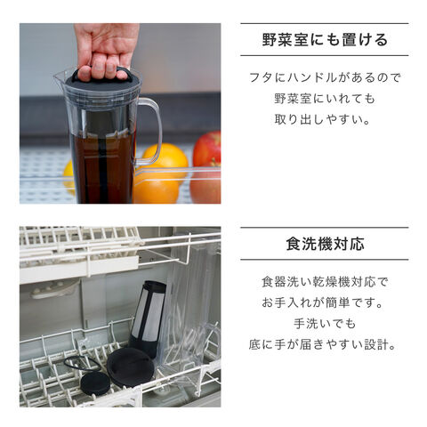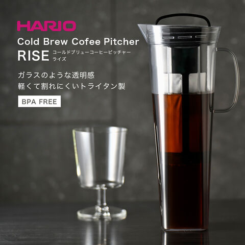 HARIO コールドブリューコーヒーピッチャー ライズ 840ml ブラック | 水出しコーヒー 麦茶ポット 密閉 アイスコーヒー 水出しコーヒーポット 横置き 縦置き 食洗機対応 日本製 お茶ポット BPAフリー トライタン ドアポケット プラスチック