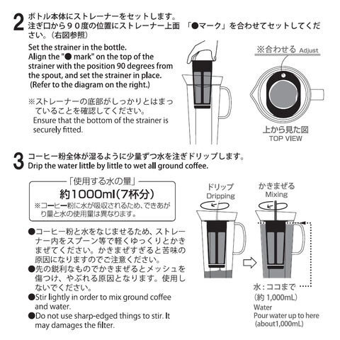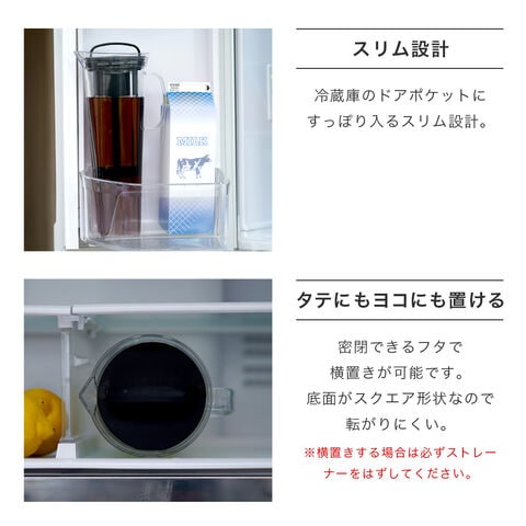 水出しコーヒーや水出し茶が作れるストレーナー(茶こし)つき。