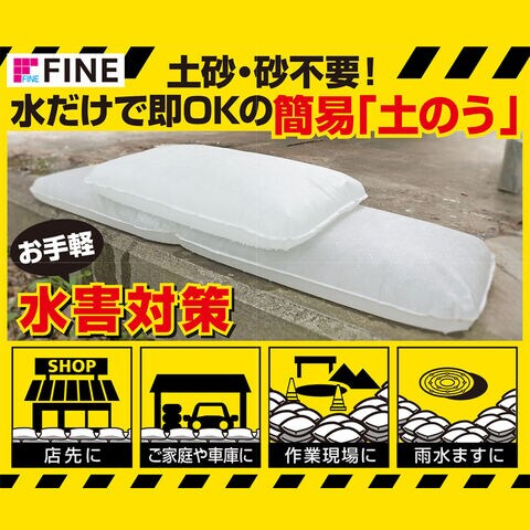 土砂などの準備不要!水で膨らませて使う簡易土のう。