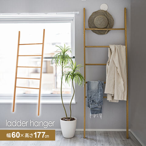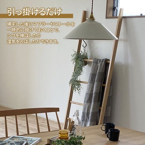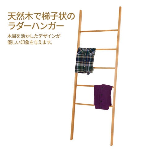 天然木でできた、梯子状のラダーハンガー。
