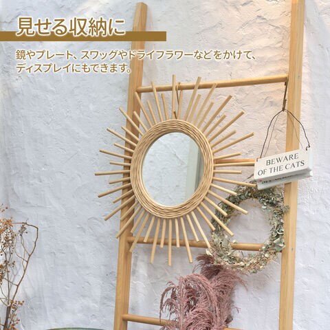 見せる収納にも鏡やプレート、スワッグやドライフラワーなどをかけて、ディスプレイにもできます。