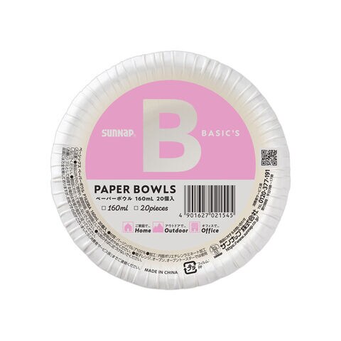 紙皿 ベーシックペーパーボウル 160ml 20個入 P1620BA | 使い捨て 簡易食器 無地 アウトドア キャンプ 行楽 行事 レジャー バーベキュー BBQ 白 オフィス 学校 ぺーぱー