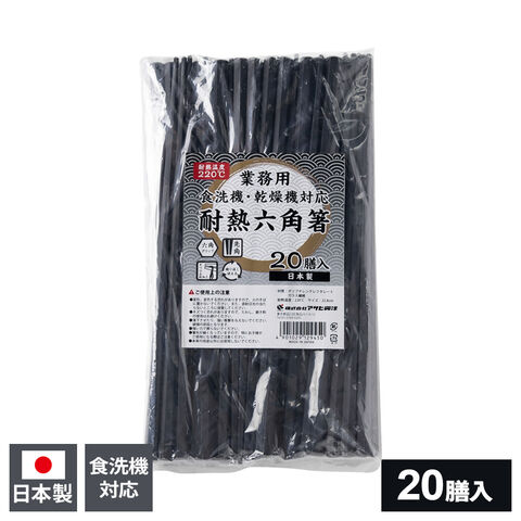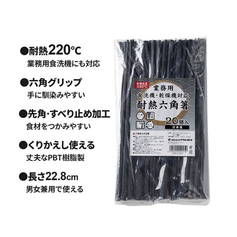 箸 業務用 耐熱六角箸 黒 20膳入 | 樹脂箸 耐熱箸 六角箸 日本製 食洗機対応 業務用 飲食店 すべり止め エコ 丈夫 来客用 先角 22.8センチ ゴミ削減 プラスチック お箸 まとめ買い