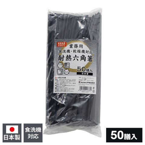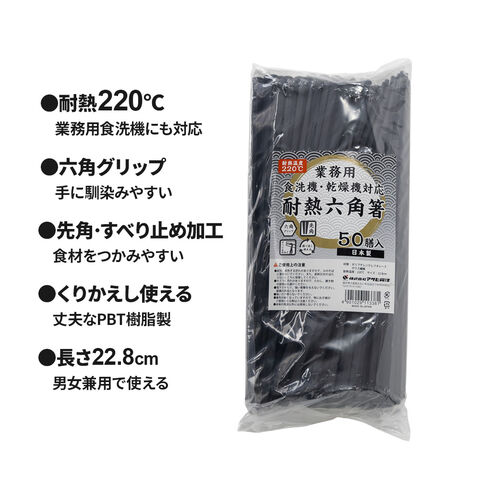 箸 業務用 耐熱六角箸 黒 50膳入 | 樹脂箸 耐熱箸 六角箸 日本製 食洗機対応 業務用 飲食店 すべり止め エコ 丈夫 来客用 先角 22.8センチ ゴミ削減 プラスチック お箸 まとめ買い