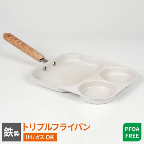 IH対応 トリプル便利フライパン ホワイト F-TRB-WH | IH ガス対応 鉄製 同時調理 朝食 お弁当 おかず3種 トリプルパン 仕切りつき 分割 時短調理 焦げ付きにくい かわいい 卵焼き ウインナー