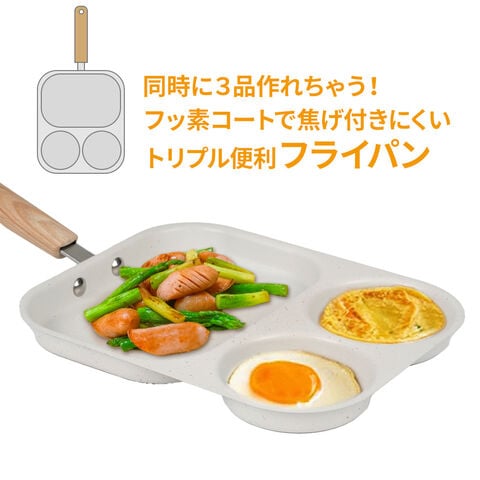 IH対応 トリプル便利フライパン ホワイト F-TRB-WH | IH ガス対応 鉄製 同時調理 朝食 お弁当 おかず3種 トリプルパン 仕切りつき 分割 時短調理 焦げ付きにくい かわいい 卵焼き ウインナーのレビュー