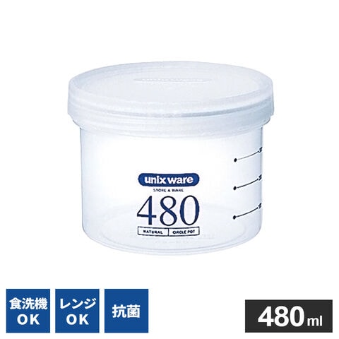 保存容器 ユニックス サークルポット PS-20・Ag 480ml | 密閉 パッキン付き 円筒 丸形 電子レンジ対応 食洗機対応 目盛り付き 抗菌 耐熱 プラスチック お弁当 汁物 液体 食品保存 キャニスター フードコンテナ