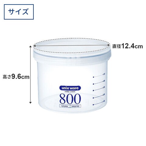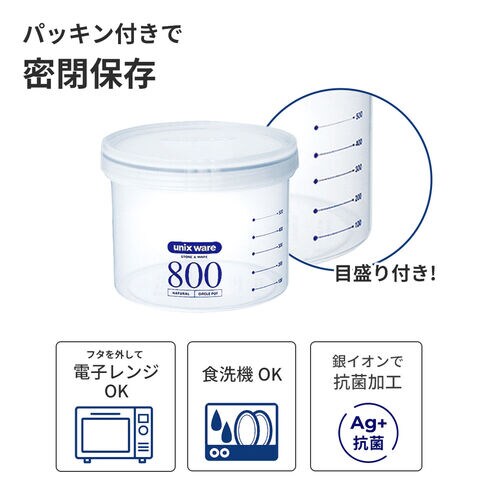 保存容器 ユニックス サークルポット PS-30・Ag 800ml | 密閉 パッキン付き 円筒 丸形 電子レンジ対応 食洗機対応 目盛り付き 抗菌 耐熱 プラスチック お弁当 汁物 液体 食品保存 キャニスター フードコンテナ