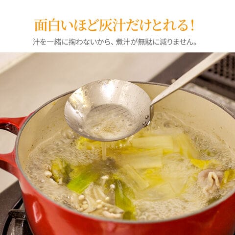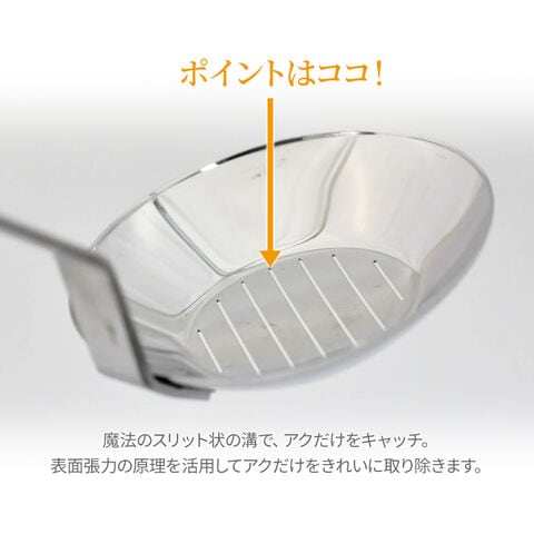 面白いほど灰汁だけとれる!表面張力の原理を活用してアクだけをきれいに取り除きます。