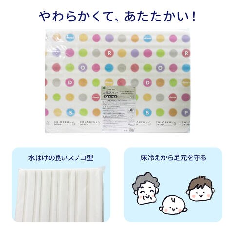 クッション性・保温性に優れたドロップ柄の浴室内マット。