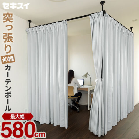 セキスイ カーテンポール・突っ張り支柱セット 3本支柱タイプ 取付高さ最大275cm 幅最大580cm(290cm×2) TCS-32 | つっぱり式 カーテンレール 伸縮 天井突っ張り 間仕切り 目隠し おしゃれ 積水 カーテンリング付き 耐荷重10kg 隔離 配信 背景 テンション 寒さ対策のレビュー