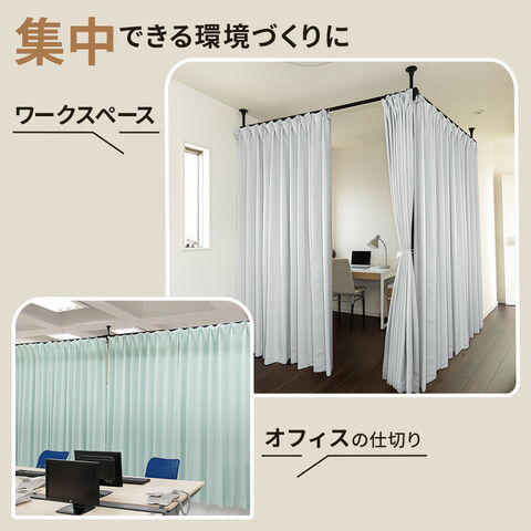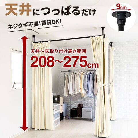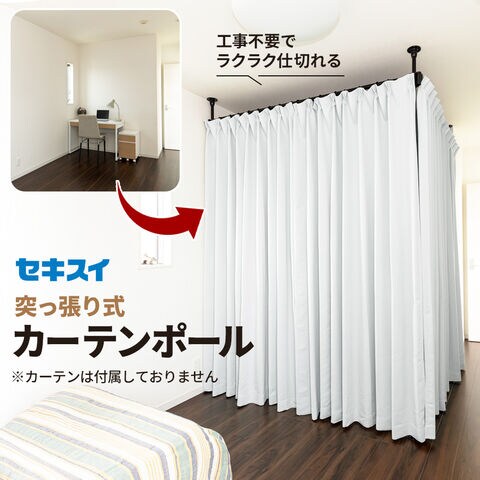 天井に突っ張ってカーテンで間仕切りできる、つっぱり支柱とカーテンポールのセット。