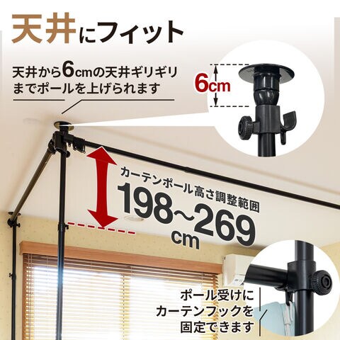 カーテンポールの長さは164~290cmの範囲で調整可能です。