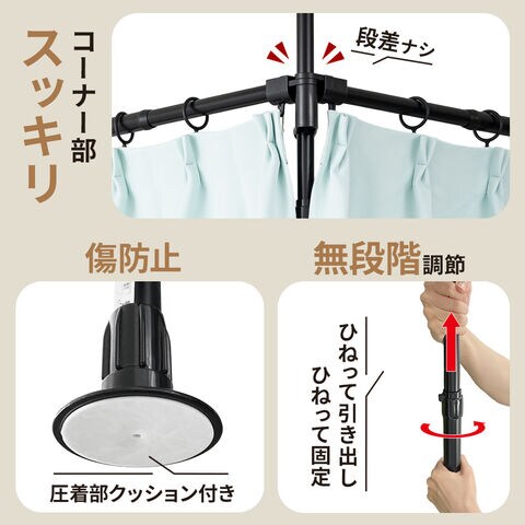 L字設置時、カーテンポールの高さが揃うから見た目スッキリ。