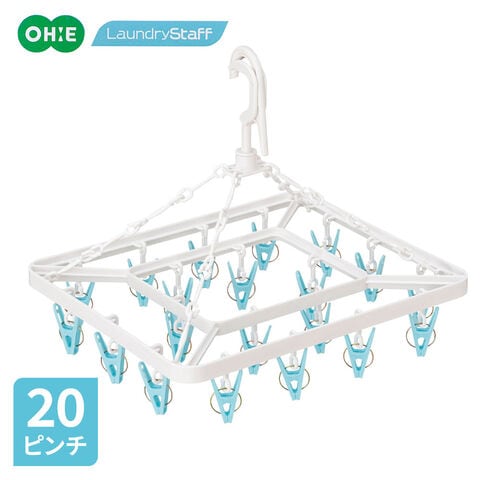 ピンチハンガー 平角ハンガー 20ピンチ | ピンチ付きハンガー 角型 洗濯ばさみ付き コンパクト 部屋干し ストッパー付き ズレにくい