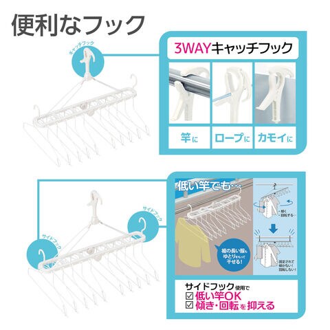 ロープや鴨居にも!3WAYフック物干し竿はもちろん、洗濯ロープや鴨居にも掛けられる3WAYキャッチフック。