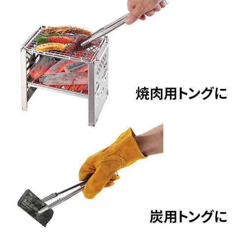 卓上調理や焚き火に便利卓上焼肉用のトングとしてはもちろん、焚き火の炭バサミとしても使用可能。