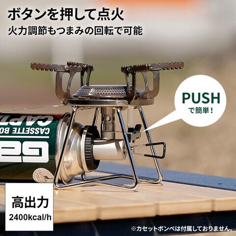 プッシュ式で簡単点火ボタンを押すだけで火が付くので、ライター等は不要。