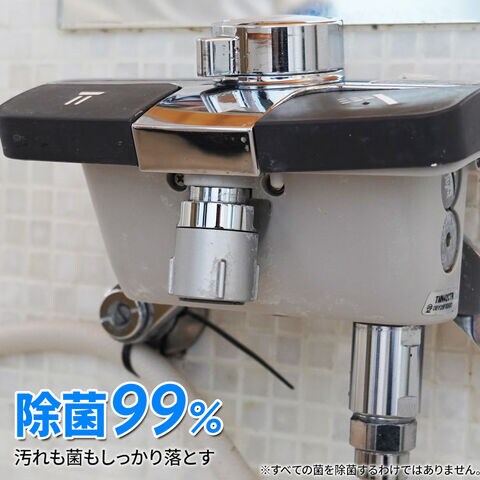 一部の蛇口・シャワーヘッド・ドア・壁・床・浴槽等では変色・劣化する恐れがあるため、目立たない所でご確認の上、ご使用ください。
