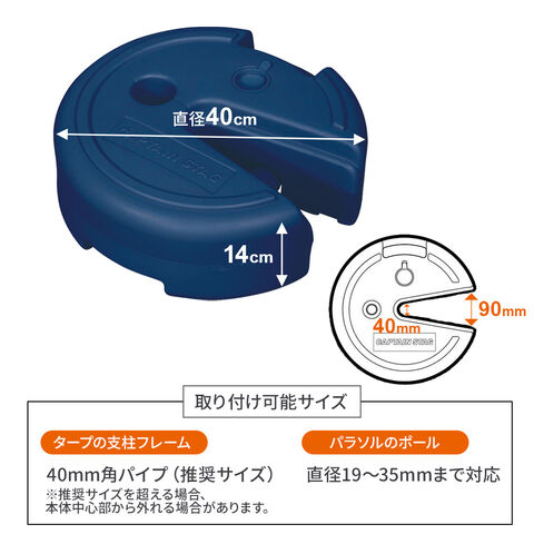 取り付け可能なパラソルのポール直径19~35mmまで対応。