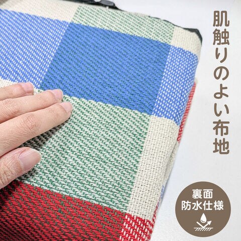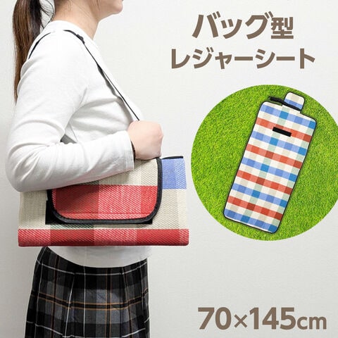 レジャーシート バッグ型 チェック 70×145cm | レジャーマット 布製 折りたたみ 肩紐付き ショルダーベルト 運びやすい やわらかい 裏面防水