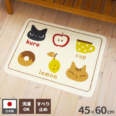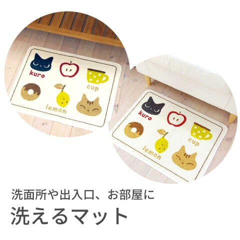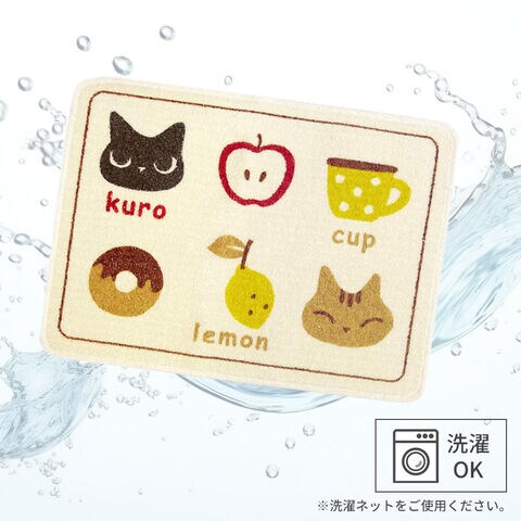 クロネコやドーナツなどがプリントされた、洗えるマット。【45×60cm】