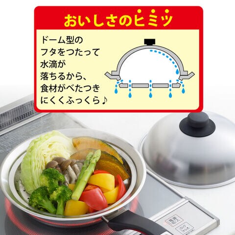 ドーム型のフタなので、たっぷり野菜もスチームできます。