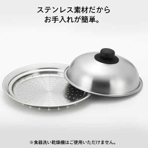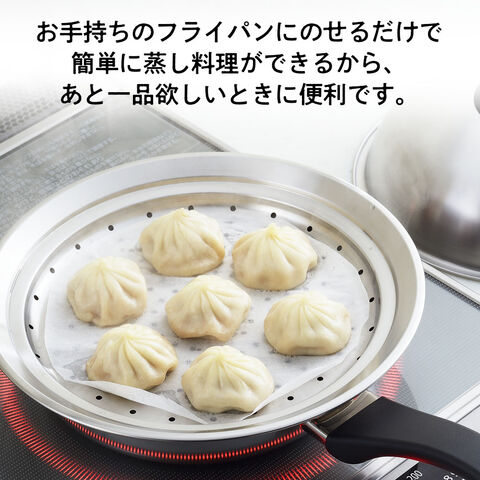 お手持ちのフライパンにのせるだけで蒸し器になる、フライパン用蒸しプレート。
