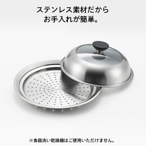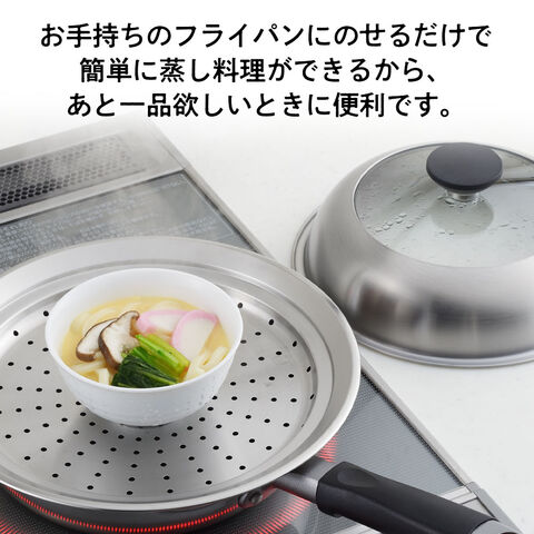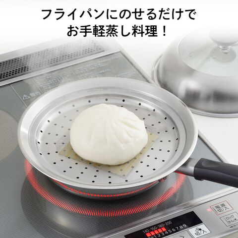 お手持ちのフライパンにのせるだけで蒸し器になる、フライパン用蒸しプレート。