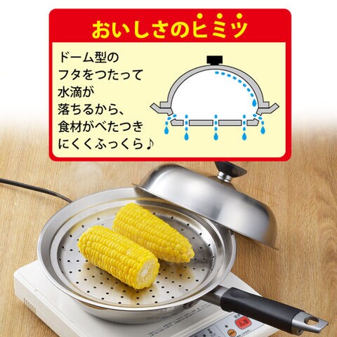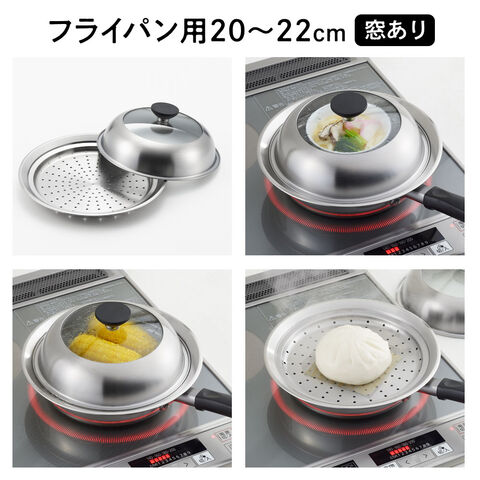 蒸し器 見える!フライパン用蒸し器 20~22cm用 | ドーム型 日本製 蒸し料理 20cm 22cm スチーマー ステンレス フタつき おしゃれ ヘルシー 便利 離乳食 セイロ せいろ ヨシカワ ガラス蓋
