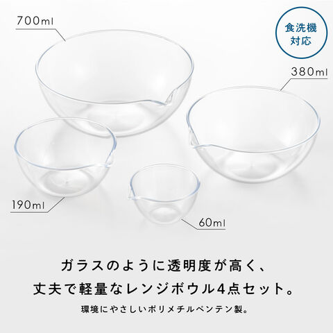 耐熱ボウル and 軽くて割れないレンジボウル 4個セット | ボウルセット 耐熱 日本製 食洗機対応 電子レンジ対応 プラスチック 軽量 スタッキング 重ねて収納 キッチングッズ 製菓グッズ 燕三条 おしゃれ ヨシカワ
