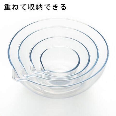 耐熱丈夫なポリメチルペンテン製で、耐熱温度200度と、熱湯が注げる耐熱ボウル。電子レンジ対応で、レンジ調理にも便利です。