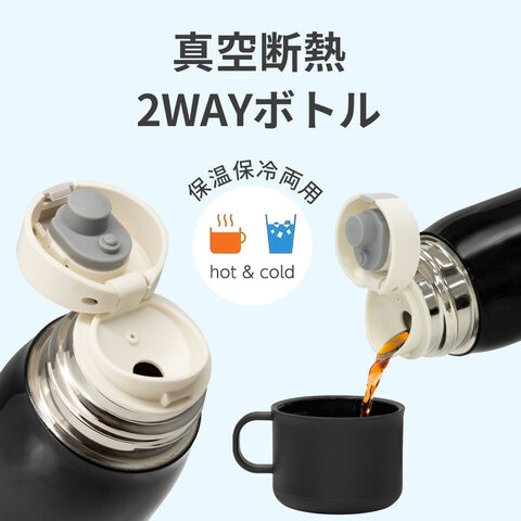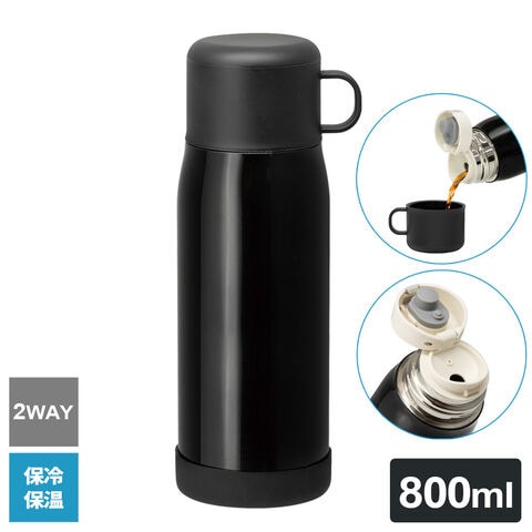 水筒 フォルテック 2ウェイボトル ブラック 800ml | ステンレスボトル 水筒 保冷 保温 直飲み コップ付き 0.8L 2way ボトル マイボトル スポーツ アウトドア 散歩 オフィス 子供 大人 かっこいい 黒
