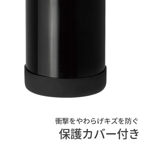保護カバー付きボトルの底を衝撃から守り、テーブルへのキズも防ぐ底面カバー付き。