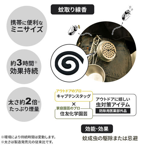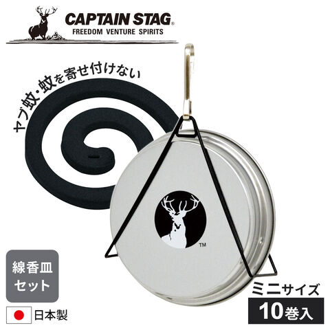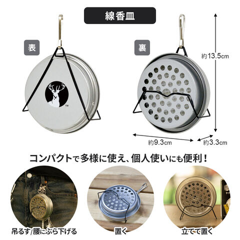 アウトドアで携帯しやすいミニサイズで、厚くて太い仕様の強力な蚊取り線香と線香皿のセット。